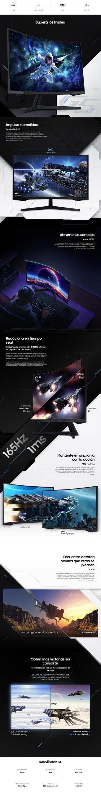 Lleva tus juegos al siguiente nivel Descripción: Sumérgete en una experiencia de juego inmersiva con el Monitor Gamer Samsung Odyssey G5 de 27 Curvo. Con su pantalla QHD curva, HDR10, frecuencia de actualización de 165 Hz y AMD FreeSync, este monitor te brindará una ventaja competitiva en tus juegos favoritos.